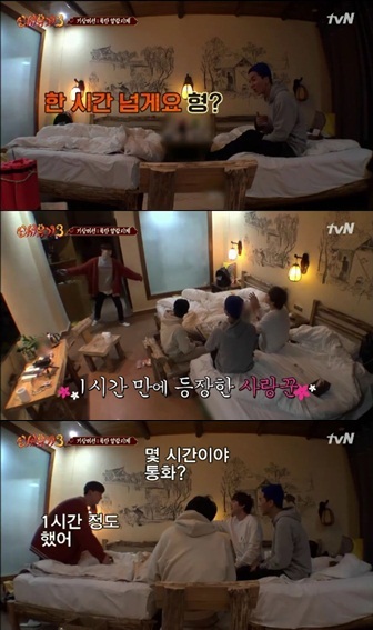 그러자 규현은 "부스에서 통화하고 있다. 한 시간 동안 서서"라고 재현의 상태를 알렸다. 민호는 그런 안재현의 모습에 "한시간동안?"말하며서 되물었다.