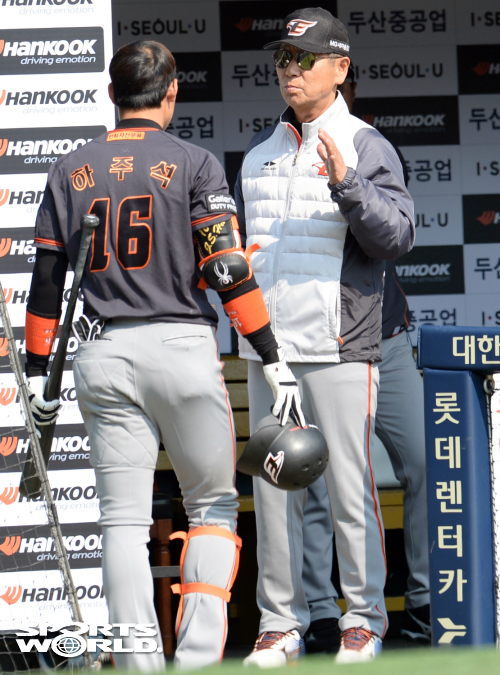 [SW포토] 김성근 감독, 하주석에게 특별 주문 기사입력 2017-04-02 15:06:56 기사수정 2017-04-02 15:06:56 글씨 크기 선택 가장 작은 크기 글자 한 단계 작은 크기 글자 기본 크기 글자 한 단계 큰 크기 글자 가장 큰 크기 글자 [스포츠월드 김용학 기자] 프로야구 한화 이글스의 김성근 감독(오른쪽)이 2일 잠실구장에서 열린 '2017 타이어뱅크 KBO리그' 두산 베어스와의 경기 4회초 2사 2,3루 이양기 타석때 대기타자 하주석에게 이야기를 하고 있다. 잠실=김용학 기자 yhkim@sportsworldi.com 2017.04.02. [ⓒ 세계비즈앤스포츠월드 & sportsworldi.com, 무단전재 및 재배포 금지] 메뉴보기 페이스북 공유 트위터 공유 url 공유 더보기