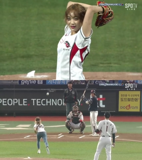 탄타난 연기력으로 SBS의 미니드라마 ‘초인가족’에서 김태이역으로 활약중인 정유민이 지난 6일 경기도 수원에서 펼쳐진 2017 KBO 리그 두산 베어스와 KT 위즈경기에서 시구자로 나섰다.