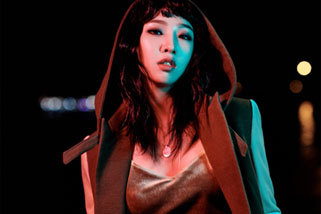 흑발 처피뱅 헤어로 파격 변신한 공민지는 후드 자켓과 브이넥 이너, 그리고 화이트 시스루와 가죽 팬츠를 각각 매치했고 거기에 스모키 메이크업을 더해 독보적인 강렬함을 드러냈다.