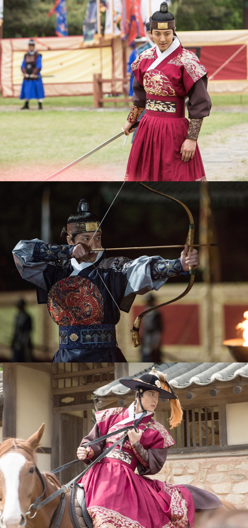 공개된 사진은 사극액션의 3종세트로 불리는 검술, 활 쏘기, 말 타기에 도전 중인 이동건의 모습을 담고 있다. 왕의 절대권력을 상징하는 붉은 의상을 입은 채 번쩍 빛을 내는 칼을 휘두르는 이동건. 어두운 밤, 타오르는 불처럼 번뜩이는 눈빛으로 목표를 응시하며 활시위를 팽팽하게 당긴 이동건. 말 위에 올라 허리가 꺾일 만큼 능수능란한 자세로 말을 다루는 이동건. 세 장의 사진 속 이동건의 모습 모두 역동적이고도 강렬해 시선을 강탈한다.