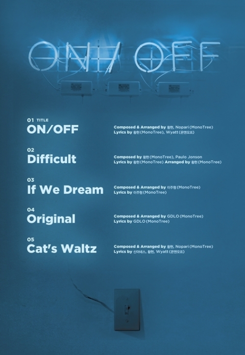 공개된 트랙리스트에는 총 5개 곡이 수록. 타이틀곡 ‘ON/OFF’를 포함한 수록곡들 모두 프로듀서팀 모노트리가 작업을 했다. 모노트리는 황현, 이주형, G-HIGH, 신아녜스, 추대관 등 실력파 작사, 작곡가들이 모인 프로듀싱 회사로, 샤이니 '방백', 레드벨벳 '데이 원(DaY 1)', 인피니트 '그리움이 닿는 곳에', 소녀시대 '첫눈에' 등 특색 있고 완성도 높은 곡들로 아이돌들을 비롯해 마니아 팬층을 보유하고 있다.