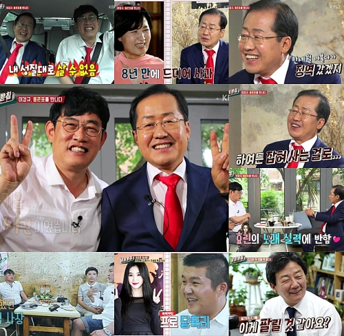 지난 25일 방송된 KBS 2TV 새 예능 ‘냄비받침’ 8회 방송에서는 ‘이경규가 만난 리더’ 두 번째 주자로 자유한국당 홍준표 대표가 출연했다. 직설화법 인터뷰로 긴장감 넘치는 토크를 펼쳐 웃음을 선사한 홍준표 대표는 ‘프로불참러’ 3형제인 안재욱, 김흥국, 조세호와 조세호의 15년 단골 가게에서 우정을 나눴다.