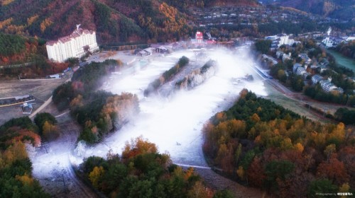 지난달 31일 제설기 가동을 시작한 용평리조트는 17일 오픈을 목표로 장비를 풀가동 하고 있는 상태다. 지난해 오픈일은 11월 4일로 올해는 시즌을 시작하는 시기가 조금 뒤로 밀렸다.