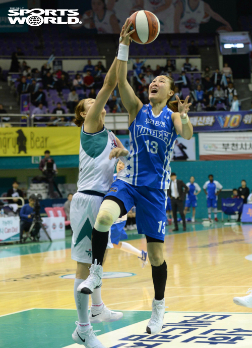 하지만 이때 ‘해결사’ 김정은이 나섰다. 나탈리 어천와의 자유투 득점으로 38-38로 균형을 다시 맞춘 우리은행은 김정은이 1분여를 남기고 3점포를 적중시켜 41-38로 다시 리드를 뺏어왔다. 이어 41-40에서 박혜진과 김정은의 3점포가 연달아 림에 꽂혀 점수차를 벌렸다.
