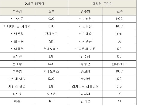 오세근 매직팀의 감독은 문경은 SK 감독이 맡았고, 이정현 드림팀의 지휘봉은 이상범 DB 감독이 잡는다.