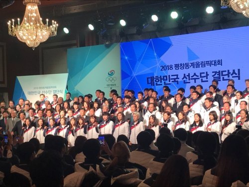 2018년 평창동계올림픽에 출전하는 한국국가대표 선수단이 24일 서울 송파구 방이동 올림픽파크텔 1층 올림피아홀에서 결단식을 열고 힘찬 출사표를 던졌다.