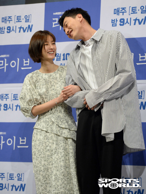 [스포츠월드 김용학 기자] 배우 정유미와 이광수가 6일 임피리얼팰리스호텔에서 열린 tvN 토,일드라마 '라이브' 제작발표회에 참석하고 있다.