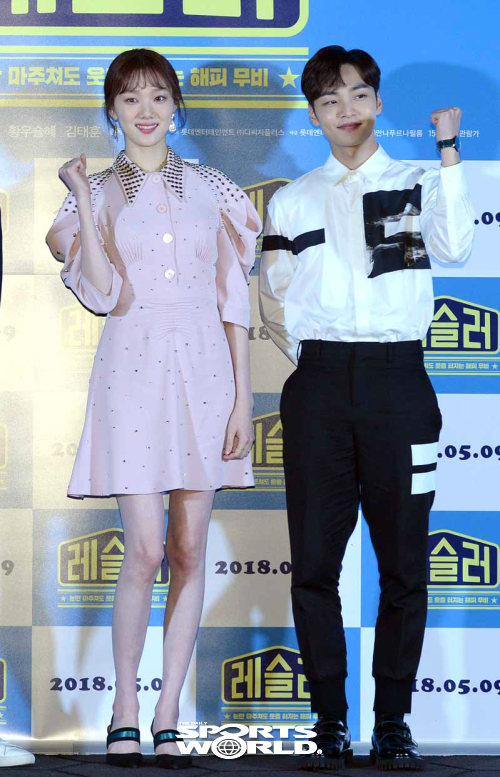 [스포츠월드 김두홍 기자] 배우 이성경(왼쪽)과 김민재가 23일 롯데시네마 건대점에서 열린 영화 레슬러(감독 김대웅) 기자간담회에서 포즈를 취하고 있다.