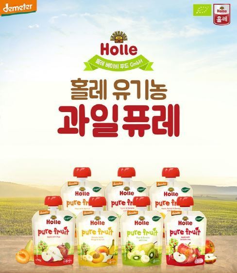 한편, 홀레 유기농 과일퓨레는 맛과 건강까지 챙긴 건강한 이유식이다. 첨가물은 물론 농축물·물 한방울 섞지 않았다. 청정자연에서 수확한 다양한 유기농 생과일로 만든 비타민·무기질·식이섬유가 풍부한 과일을 월령에 맞게 배합해 아이 간식뿐 아니라 저월령 아기의 이유식으로도 활용할 수 있다. 개당 90g의 작은 사이즈로 소포장해 외출 시에도 간편하게 먹일 수 있다.