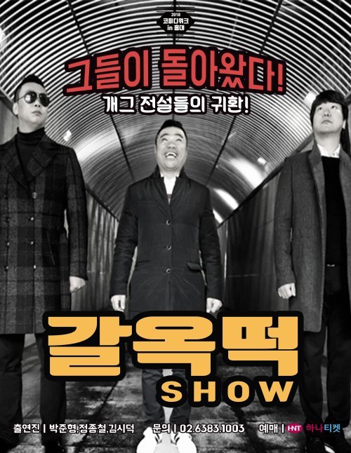 박준형·정종철·김시덕은 2000년대 초중반 KBS ‘개그콘서트(이하 개콘)’에서 ‘생활 사투리’, ‘마빡이’ 등 다양한 인기 코너에서 활약했다. 당시 매주 20%대의 시청률을 기록하며 전 국민의 일요일 밤을 책임졌던 세 사람이 이번에는 ‘코미디위크’를 찾은 관객들의 웃음을 책임질 전망이다. 이들은 코미디 공연 활성화라는 ‘코미디위크’ 취지에 공감하며 약 10년 만에 ‘갈갈이 패밀리’라는 이름으로 명불허전 유쾌한 웃음을 선사할 계획이다.