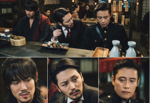 이와 관련 이병헌과 유연석, 변요한이 22일(오늘) 방송될 6회분에서 처음으로 함께 술자리를 갖는 모습이 포착돼 호기심을 유발시키고 있다. 극중 우연히 같이 술을 마시게 된 유진과 동매 사이로 희성이 갑작스럽게 들어 닥치는 장면. 유진과 동매는 무표정하게 앞을 바라보면서 술잔을 기울이고, 두 사람의 가운데에 앉은 희성은 유진과 동매 쪽을 번갈아 바라보며 술을 마시느라 고군분투한다.