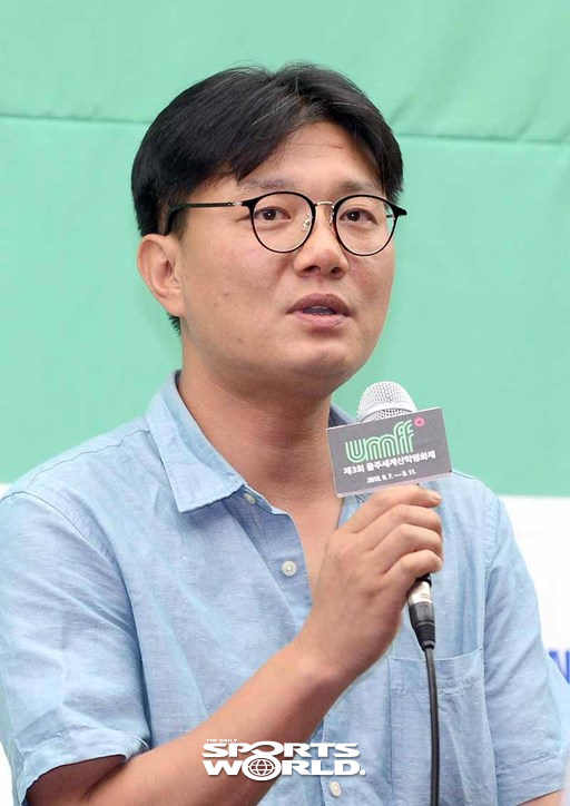 [스포츠월드 김두홍 기자] 양태진 감독이 13일 중구 프레지던트호텔에서 열린 '제3회 울주세계산악영화제 기자간담회'에서 질문에 답하고 있다.