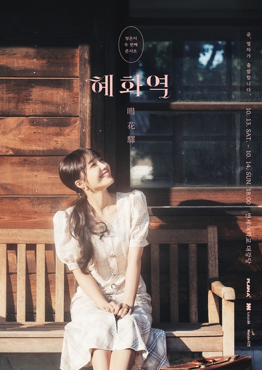 정은지의 콘서트 ‘혜화역’은 ‘별 반짝일 혜(暳)’와 ‘꽃 화(花)’를 써서 ‘소소하지만 별처럼 반짝이고 화려하지만 은은한 향기를 풍기는 꽃 같은 우리들의 청춘’이라는 의미를 담았다. 청춘이 머무르는 기차역에 관객들을 초대하는 이색 콘셉트로 꾸려질 예정이다.