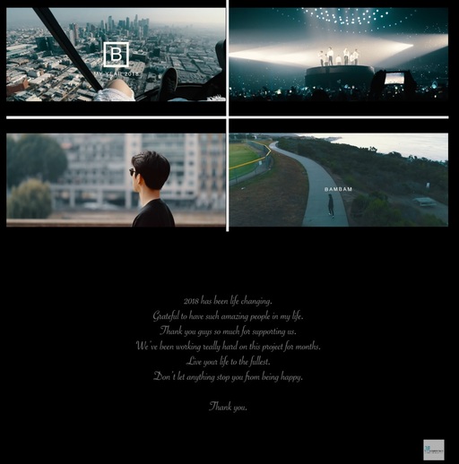 올해 월드투어를 이어가면서 틈틈이 해당 콘텐츠를 기획한 뱀뱀은 영상 말미에 전 세계 팬들을 향한 영문 메시지를 실었다. 뱀뱀은 "2018년은 제 인생의 전환점이었다. 이렇게 멋진 사람들이 제 인생에 있다는 것, 우리에게 보내주는 사랑과 응원에 감사드린다"며 고마움을 전했고 "우리는 이 프로젝트(GOT7 2018 월드투어)를 위해 오랜 시간 동안 노력해왔다. 모두가 인생을 최선을 다해 살고, 최선을 다해 누렸으면 한다. 그 어떤 것도 당신의 행복을 가로막지 않길 바란다"고 진심 어린 메시지로 보는 이들에게 감동을 선사했다.