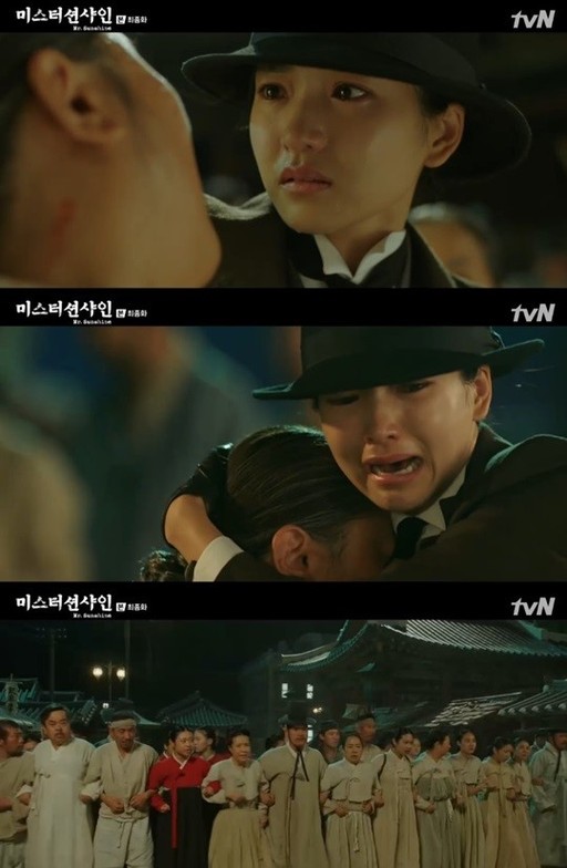 30일 방송된 tvN 주말드라마 '미스터 션샤인' 24회에서는 고애신(김태리)이 일본군의 총에 맞은 행랑아범(신정근)과 함안댁(이정은)을 발견하는 모습이 전파를 탔다.