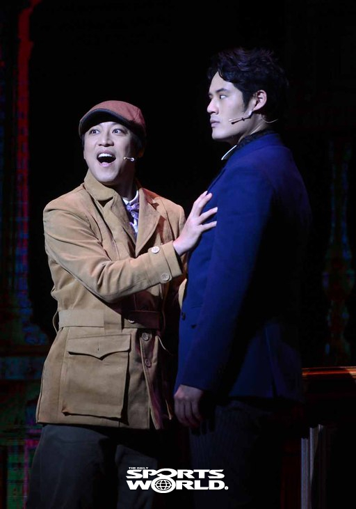 [스포츠월드 김두홍 기자] 뮤지컬배우 오만석과 서경수가 13일 홍익대 대학로 아트센터 대극장에서 열린 젠틀맨스 가이드 : 사랑과 살인편' 프레스콜에서 열연하고 있다.