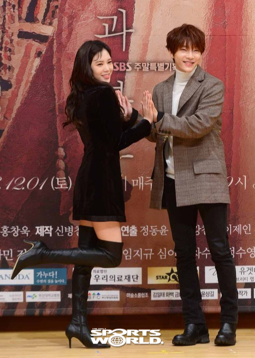 [스포츠월드 김두홍 기자]배우 박수아(왼쪽)와 윤학이 30일 목동SBS에서 열린 SBS 주말 특별기획'운명과 분노' 제작발표회에서 포즈를 취하고 있다.
