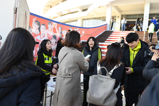 체육관에 들어서는 순간 깜짝 놀랄 일이 벌어졌다. 입장권을 확인하는 안내요원이 바로 정지석(대한항공) 이재영(흥국생명)이었다. 그 옆줄에는 노재욱(우리카드)도 있다. 어느 줄에 서야 할지 행복한 고민을 하던 팬들은 체육관에 들어서는 더 깜짝 놀랐다. 지태환(삼성화재) 최은지(인삼공사) 안혜진(GS칼텍스)이 기념품을 나눠줬고, 고예림 이나연 어나이(이상 IBK기업은행)도 함께했다. 프로배구 V리그 올스타전이 열린 20일 대전 충무체육관은 팬과 함께 호흡하는 배구 축제의 장이었다.