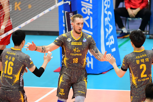 KB손해보험은 28일 수원체육관에서 열린 ‘도드람 2018∼2019 V리그’ 남자부 5라운드 원정경기에서 한국전력을 세트스코어 3-2(25-23 14-25 25-14 25-27 15-9)로 격파했다. 6위(승점 27점 9승17패)인 KB손해보험은 최하위 한국전력(승점 13점 2승24패)을 상대로 자존심을 지켰다.