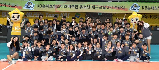KB는 지난 26일 홈구장인 의정부체육관에서 KB유소년배구클럽 2기 학생들과 가족들을 초청해 수료식과 다양한 이벤트를 가미한 자체대회를 진행했다. 지난해 8월 시작된 2기 KB유소년배구클럽은 90여명의 학생들이 참가해 20차수 수업을 들었다.