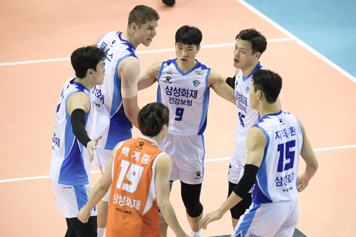 삼성화재는 12일 대전충무체육관에서 열린 ‘도드람 2018∼2019 V리그’ 남자부 5라운드 우리카드와의 홈경기에서 세트스코어 1-3(17-25 25-23 18-25 15-25)으로 패했다. 승점 42점에 그대로 머물며 3위 현대캐피탈(56점)과 격차를 좁히지 못했다. 승점 3점 차 이내여야 준플레이오프가 성사된다는 것을 감안하면 포스트시즌 진출은 사실상 어려워졌다.
