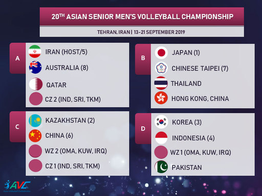 아시아배구연맹(AVC)이 19일 태국 방콕 두짓프린세스 호텔에서 2019 아시아남녀배구선수권대회 조 추첨을 실시했다. 지난 대회 상위 7개 팀이 시드 배정을 받았고, 나머지 팀들이 추첨으로 남은 자리에 이름을 올렸다.