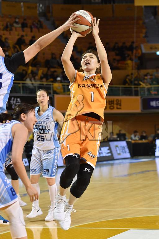 국민은행은 페인트존에 선수들을 대거 배치해 리바운드에 신경을 썼고, 외곽 슈팅을 시도할 때는 두 명 이상의 선수로 상대를 방해했다. 이때 염윤아의 노련미가 빛났다. 삼성생명이 박지수(11득점)나 카일라 쏜튼(26득점)의 리바운드를 견제할 때, 염윤아가 번뜩이는 움직임으로 리바운드에 성공했다. 왕성한 활동량으로 상대공을 뺏아오는 능력은 덤이었다.