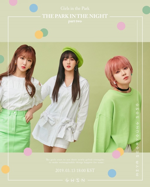 공원소녀(서령, 서경, 미야, 레나, 앤, 민주, 소소)는 8일 0시 페이스북을 비롯한 공식 SNS 채널을 통해 두 번째 미니앨범 ‘밤의 공원 part two(THE PARK IN THE NIGHT part two)’ 서령, 소소, 미야의 2차 콘셉트 포토 및 일러스트 캐릭터 아트 이미지를 게재했다.