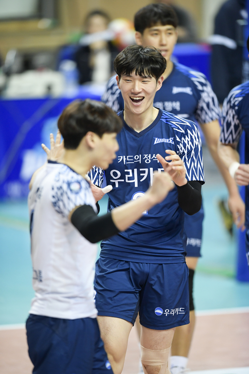 남자프로배구 우리카드는 10일 서울장충체육관에서 열린 ‘도드람 2018~2019 V리그’ 6라운드 현대캐피탈전에서 세트스코어 3-2(25-16 23-25 25-16 20-25 15-6)로 신승을 거뒀다. 3위(승점 63점·20승16패)로 플레이오프에 직행한 데 이어 5연패를 끊고 리그 마지막 경기를 승리로 장식했다.