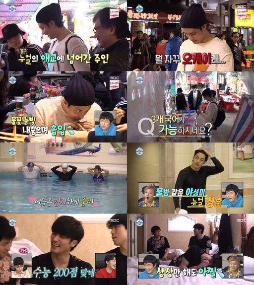 더불어 침대 쟁탈전을 위해 호텔에 있는 수영장을 찾은 그는 전직 수영선수의 프로페셔널함을 풍겨냈다. 명불허전 수영 실력과 불타오르는 승부욕을 보여주며 시청자들의 입을 떡 벌어지게 만든 반면 이시언, 기안84와 함께 얼간미(美) 넘치는 3종 경기로 웃음까지 꽉 잡은 맹활약을 펼쳤다.