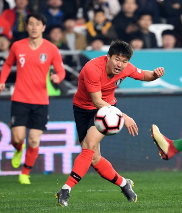 눈에 띄는 선수는 권창훈이었다. 오른쪽 측면 공격수로 나선 권창훈은 지난 2018년 3월27일 폴란드와의 A매치 평가전에 출전한 뒤 약 1년 만에 다시 태극마크를 달고 그라운드를 밟았다. 지난해 5월 아킬레스건 파열이라는 큰 부상을 당하면서 2018 러시아월드컵은 물론 2018 자카르타 팔렘방 아시안게임 기회도 놓쳤다.