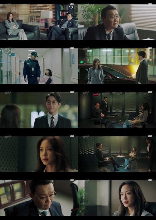 그러나 지수현은 표정의 미동조차 없이 “사진으로 누굴 협박하는 건 우리 같은 사람들이나 하는 거예요. 검사쯤 되시는 분이면 법대로 영장을 가져오셔야죠”라고 일침을 날렸던 터. 하지만 김명진은 딸과 함께 있는 한석주를 잡아가겠다고 협박했고, 이에 지수현이 흔들리는 순간, 김명진이 부장 검사의 담소 요청이니 협조해 달라며 태도를 바꿨다. 지수현은 “진작 그렇게 예의를 갖췄으면 좀 좋아요?”라며 “한 번 가봅시다. 나도 검찰청의 차우진 부장이 어떤 분인지 무척이나 궁금하네”라며 따라나섰다.