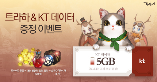 이벤트에 당첨된 고객 30만 명은 다음 달 1일 트라하 설치 용량인 5GB 데이터와 함께 10만 골드, 대형 생명력 회복 물약(200개), 소환수·펫 상자(5개) 등 게임 플레이에 도움을 주는 아이템을 얻는다. 5레벨 이상 달성 시 당첨 확률이 높아진다.