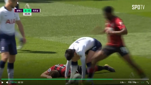 본머스는 이날 손흥민을 집중적으로 견제했다. 공을 잡으면 기본 2명의 선수가 둘러쌌다. 중요한 것은 정정당당하게 손흥민을 방어한 것이 아니다. 눈에 보이지 않는 반칙을 수없이 저질렀다. 가장 큰 예가 전반 44분이다.
