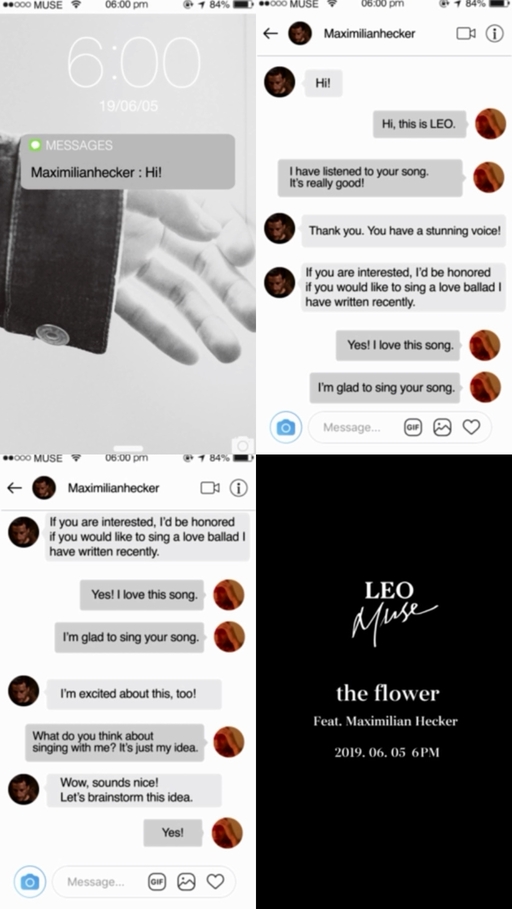 공개된 영상은 20초가량의 짧은 영상이며 레오의 휴대폰 배경 화면 위로 막시밀리언 헤커에게 ‘Hi’ 라는 인사와 함께 모바일 메신저 알림이 뜨며 시작된다. 이어 레오가 ‘너의 노래 들어봤어. 정말 좋더라!’라고 화답, 훈훈한 대화가 이어지며 ‘나랑 같이 노래 불러 보는 건 어때?’ , ‘이 아이디어를 브레인스토밍 해보자’라고 말함과 동시에 ‘the flower’의 공개 일시를 끝으로 영상은 마무리된다.