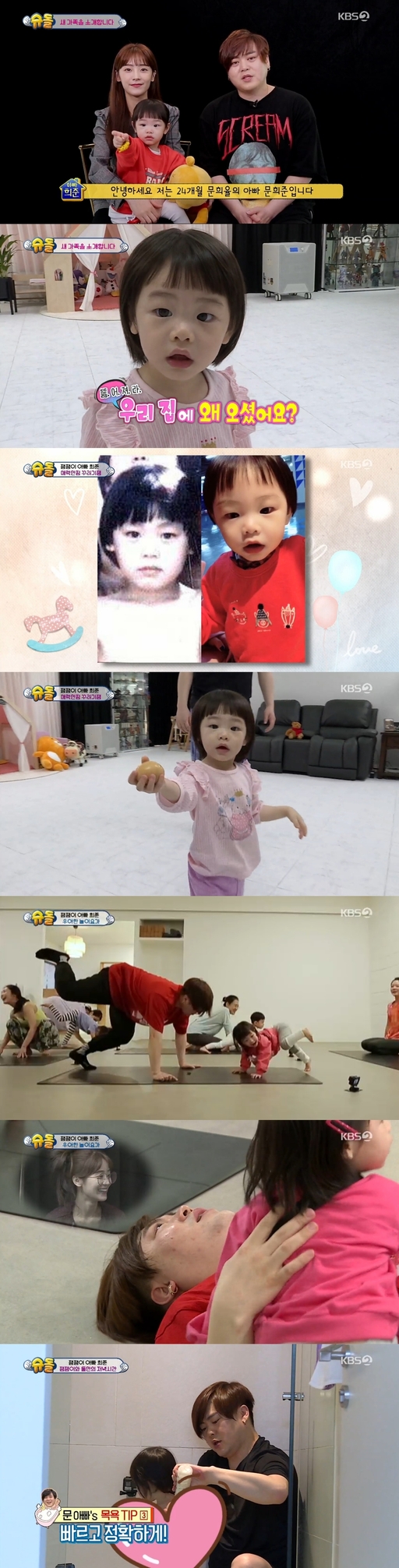 활발한 희율의 모습과 함께 불혹을 넘긴 아빠 문희준의 투혼도 빛이 났다. 그는 아무리 힘들어도 항상 웃는 얼굴로 희율이를 마주했다. 영화 ‘겨울왕국’의 배경음악에 맞춰 신나게 춤을 추는가 하면 육아의 고난도 코스 중 하나인 아이 씻기기도 능숙하게 해냈다. 이후 소율은 문희준이 출산 후 뼈가 시린 자신을 위해 목욕만큼은 계속 담당해왔다고 밝혔다. 방송을 통해 보여준 그의 가정적인 면모들을 통해 그의 진정성을 알 수 있었다.