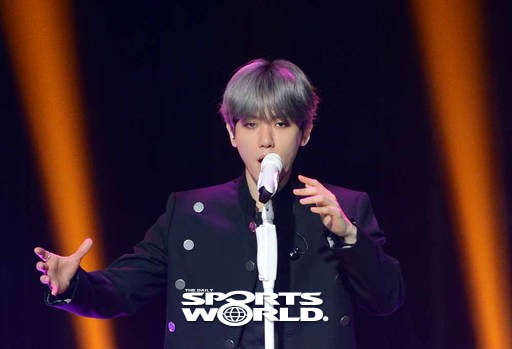 [스포츠월드 김두홍 기자]엑소 백현이 10일 삼성동 SAC아트홀에서 열린 첫 솔로 앨범 ‘City Lights’(시티 라이츠) 발매기념 쇼케이스에서 열창하고 있다.