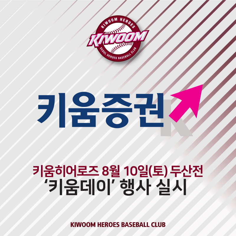 [스포츠월드=김진엽 기자] 키움히어로즈는 10일 오후 6시 서울 고척스카이돔에서 열리는 두산베어스와의 경기에 메인스폰서 키움증권과 ‘키움데이’를 실시한다.