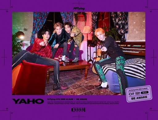 엔플라잉의 소속사 FNC엔터테인먼트는 3일 엔플라잉 공식 SNS를 통해 여섯 번째 미니앨범 ‘야호(夜好)’의 ‘비 어웨이크(BE AWAKE)’ 버전 단체 재킷 포토를 공개했다.