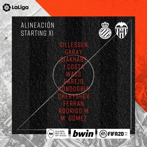 3승 5무 3패(승점 14)로 리그 11위인 발렌시아는 이날 승리가 절실하다. 이에 가용 최정예인 실러센, 가라이, 디아타비, 코스타, 바스, 파레호, 콘도그비아, 체리셰프, 토레스, 모레노, 고메스를 선발로 출격시켰다. 이강인은 후반 중반께 조커로 출전해 창의성을 더할 가능성이 크다.