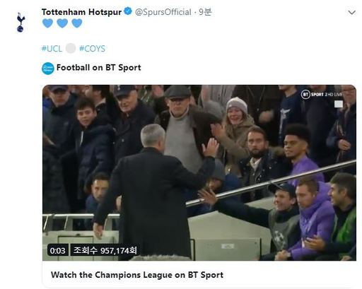 사연은 이렇다. 동점골이 터진 후반 5분. 모우라가 내준 패스를 케인이 마무리했다. 오른쪽 측면에서 펼쳐진 스로인 상황을 빠르게 전개한 덕분이 모우라가 역습으로 가져갈 수 있었다. 백미는 이전 장면. 터치라인 밖으로 공이 나가자 볼보이가 신속하게 공을 전달한 덕분에 이런 속공이 가능했다. 동점골 이후 무리뉴 감독이 해당 볼보이에게 다가가 포옹을 하면서 고마움을 전한 바 있다.