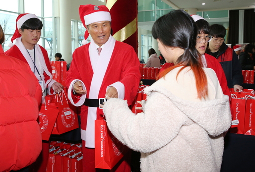 특히, 공연 관람을 마치고 퇴장하는 아이들에게 산타 복장을 한 골프존뉴딘그룹 임직원들은 학용품 등 크리스마스 선물과 함께 따듯한 격려의 말을 건네며 훈훈한 크리스마스 분위기를 자아냈다. 이날 전달된 크리스마스 선물은 소외계층 아동들이 보다 따듯한 겨울을 보낼 수 있도록 골프존뉴딘그룹 임직원들이 매월 급여에서 일정 금액 기부한 성금으로 마련돼 행사의 의미를 뜻깊게 만들었다.