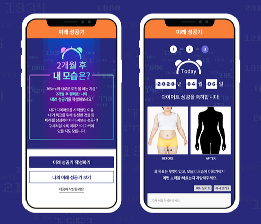 안재현 365mc병원 대표병원장은 “이번에 론칭한 미래성공기는 다이어터의 자신감 회복에 주요 목적을 뒀다”며 “비만인은 대부분 자신감이 떨어지고, 자기비하에 빠지기 쉬운데 ‘뚱뚱한 자신’이 아닌 다이어트에 성공해 ‘날씬해진 미래 모습’을 상상해 자존감과 자신감을 키우면 감량 의지를 높이고 비만치료에 도움이 될 수 있다”고 설명했다.