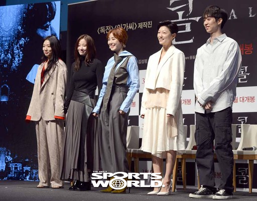 [스포츠월드 김두홍 기자]배우 박신혜, 전종서, 김성령, 이엘, 이충현 감독(왼쪽부터)이 14일 CGV압구정점에서 열린 영화'콜(이충현 감독) 제작발표회에 참석하고 있다.