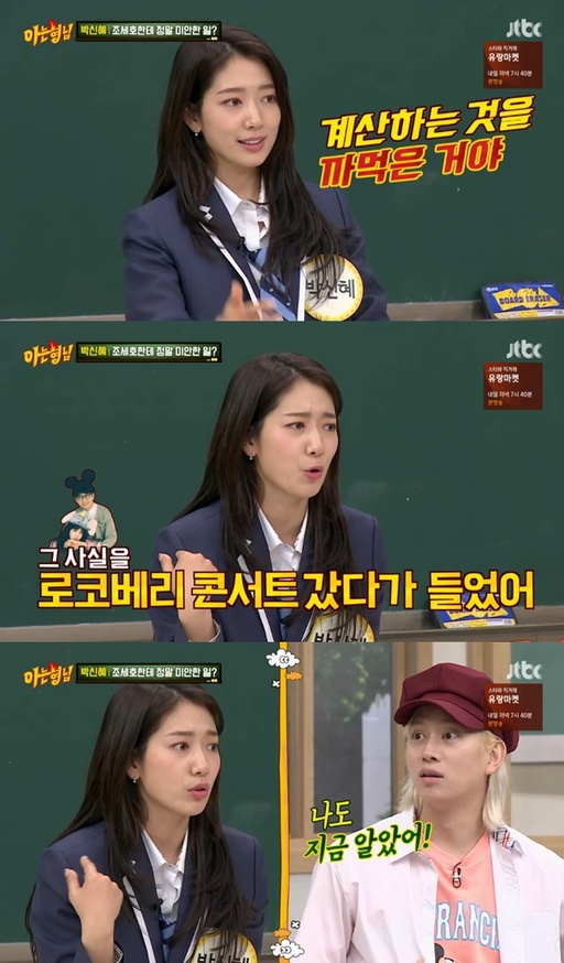 방송중에 박신혜가 조세호에게 미안했던 일이 있다고 밝혔다. 박신혜는 “내 생일파티 때 초대하지 않았던 조세호가 왔다. 김희철이 조세호를 부른거였다. 1차에서 많이 먹고 마시고 2차에 갔다”며 “다들 술도 많이 마시고 피곤하니까 계산하는걸 까먹었다. 이미 내 생일로 모인게 아니라 놀려고 모인 것처럼 돼서 나도 가고 희철이도 가고 조세호가 계산했다”고 말했다.