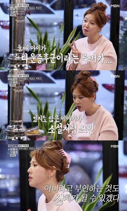 이날 박은혜와 이윤미의 자신들을 향해 달리는 악성 댓글에 관해 이야기를 나눴다. 박은혜는 “댓글을 볼 때 예전에는 ‘이런 걸 왜 써’라고 생각했는데 이제는 ‘나를 다 좋아할 순 없지. 누군가에게 내가 싫은 사람일 수 있다’라고 인정하니 행복해졌다”고 운을 뗐다.