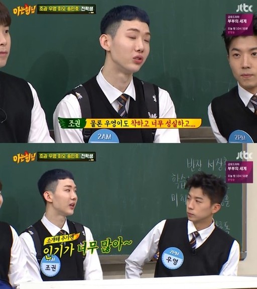 지난 4일 방송된 JTBC 예능프로그램 ‘아는형님’에는 그룹 2AM 조권, 2PM 우영, 위너 송민호, 블락비 피오가 게스트로 출연했다.