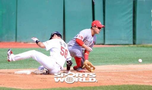 [스포츠월드 김두홍 기자]프로야구 SK 수펙스 김창평(왼쪽)이 16일 문학 행복드림구장에서 열린 SK 퓨처스와의 경기 5회말 무사 3루타를 때리고 슬라이딩을 하고 있다. 문학=김두홍 기자 kimdh@sportsworldi.com 2020.04.16.