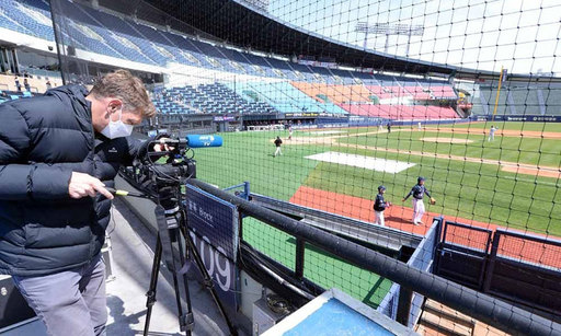 사진=스포츠월드 DB/ 미국 스포츠전문매체 ESPN이 KBO리그 영상을 무료로 보내줄 것을 요구해 비난이 일고 있다. 사진은 지난 21일 LG와 두산 연습경기를 취재하고 있는 외신 기자 모습.